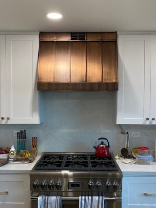 Customization: Tailor your copper vent hood to perfectly fit your kitchen's design with fully customizable options in size, shape, finish, and decorative elements.